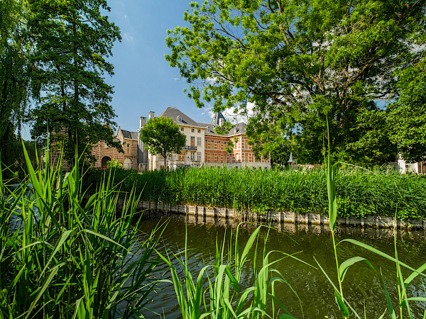 Rivus heeft een buurtpark van 5.000 m². Dit groene hart biedt niet alleen een prachtig uitzicht voor de parkappartementen, maar ook een veilige speelplek voor kinderen en huisdieren en een rustpunt voor wie even aan de drukte wil ontsnappen. Bovendien vormt het park een natuurlijke verbinding met de omliggende parken: op slechts enkele minuten wandelen bereik je het Rivierenhof, Park Groot Schijn en het Te Boelaerpark.